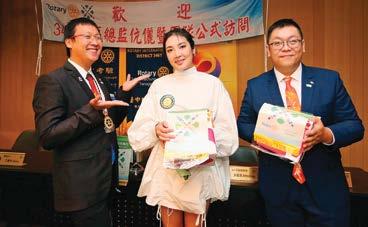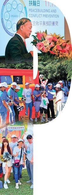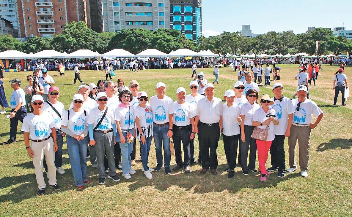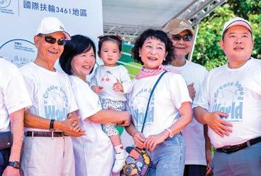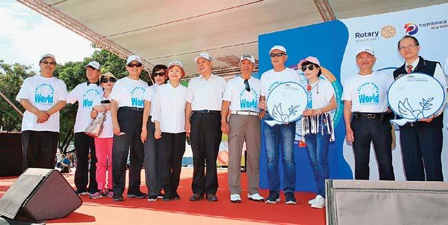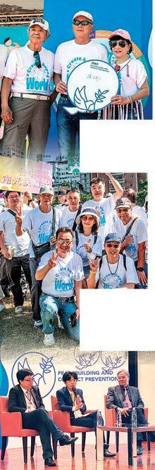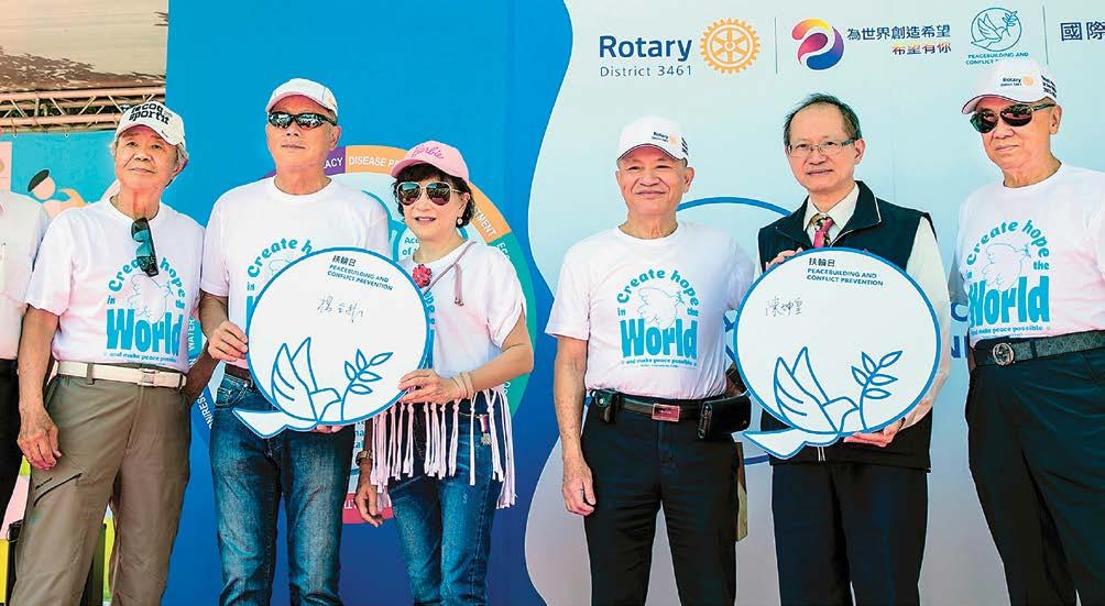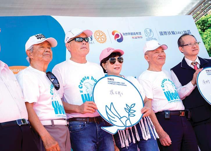 平的年度主題,扶輪日當天舉辦了 「和平論壇」宣揚扶輪締造和平及防 止衝突對抗的貢獻,更集合超過二千 名扶輪社友一起穿著白色的和平鴿T 恤,舉行倡議和平的宣誓儀式,現場 並有和平鴿展翅高飛,倡導八項積極 和平(Positive Peace)的指標,包 含「與鄰為善」、「杜絕貪腐」、「效