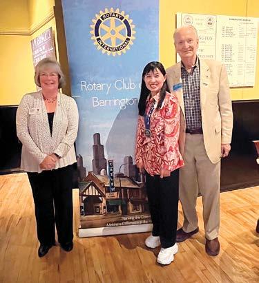 芝加哥馬拉松賽事後,10月12日中午參與芝加 哥的扶輪社The Barrington Rotary Club例會。我 們何其幸運,該社原是早上7時的早餐例會,剛好 10月12日變更為午餐例會。因我們必須搭乘一小 時的火車車程,才能抵達Barrington。中午例會剛 好符合交通時間。當天早上,飄著細雨,我們抵達 Barrington火車站。眼前所見,一位身材高挑的紳 士,在火車站迎接我們到來。我們猜想應該就是The