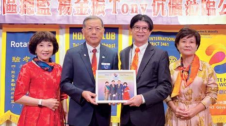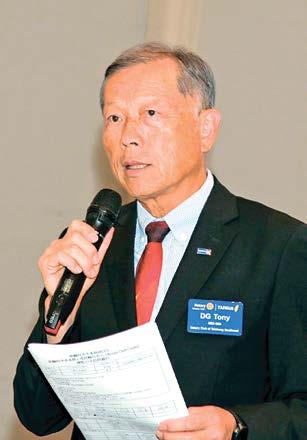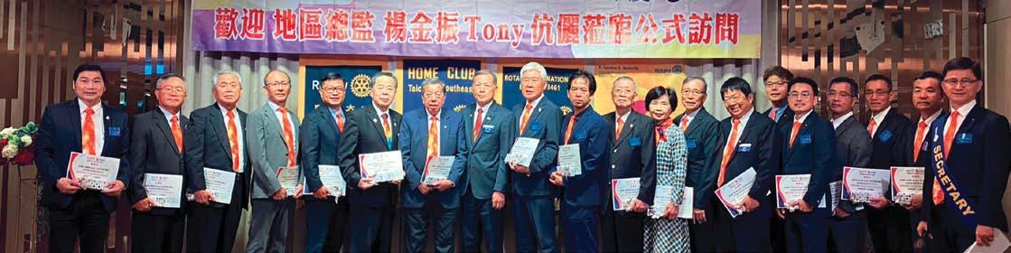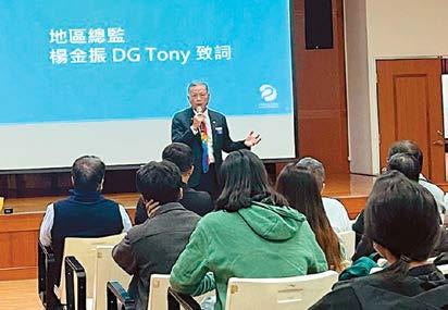 DG Tony首先還是特別感謝社長Daniel跟五 大主委還有所有台中東南扶輪社社友及夫人的全 力配合,成為總監最大的助力;本場總監公訪的