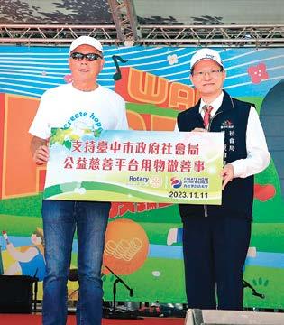 多個社會福利團體進行愛心義賣活動,義賣所得全數回饋 弱勢群族外,本次地區扶輪服務日活動剩餘款更將捐贈台 中市政府社會局公益慈善平台,以公私協力合作方式來做 公益並照顧社會弱勢族群。