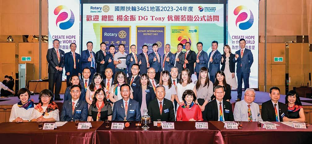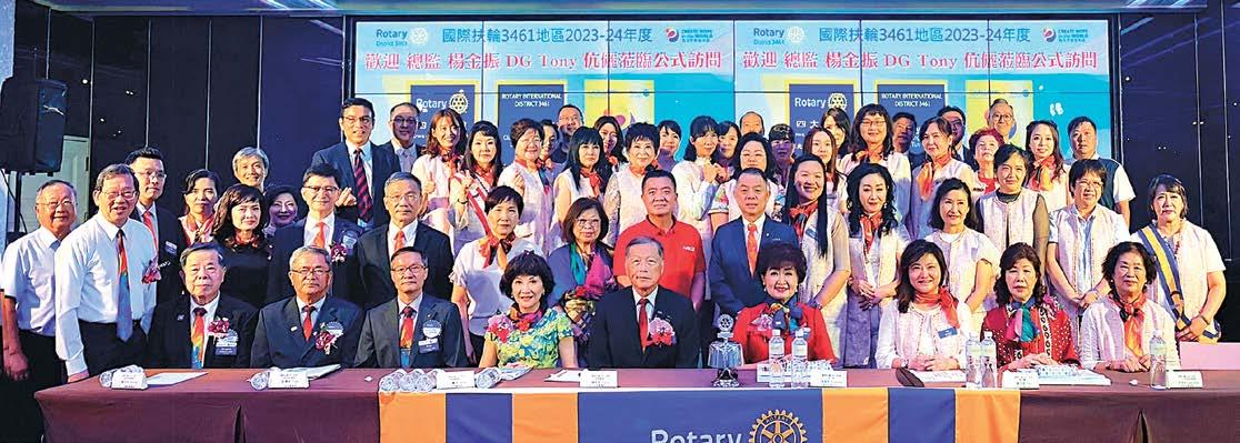 最終站,總監DG Tony的本社回到自己家的感 覺特別溫馨,在總監演講中播放RI社長葛登.麥 金納利訪問台灣的影片,傳達國際扶輪(為世界 創造希望)的年度目標,闡明扶輪公共形象的改 變並贈送新的扶輪徽章;總監DG Tony任內在 3461地區創新設置一個(職業服務委員會),建 立網路資料庫識別所有社友職業查詢的服務,並 持續更新地區人才網路資料庫,可供所有3461 的扶輪社使用;年會委員會主委IC宣導年會活 動與總監頒發地區聘書後圓滿完成。