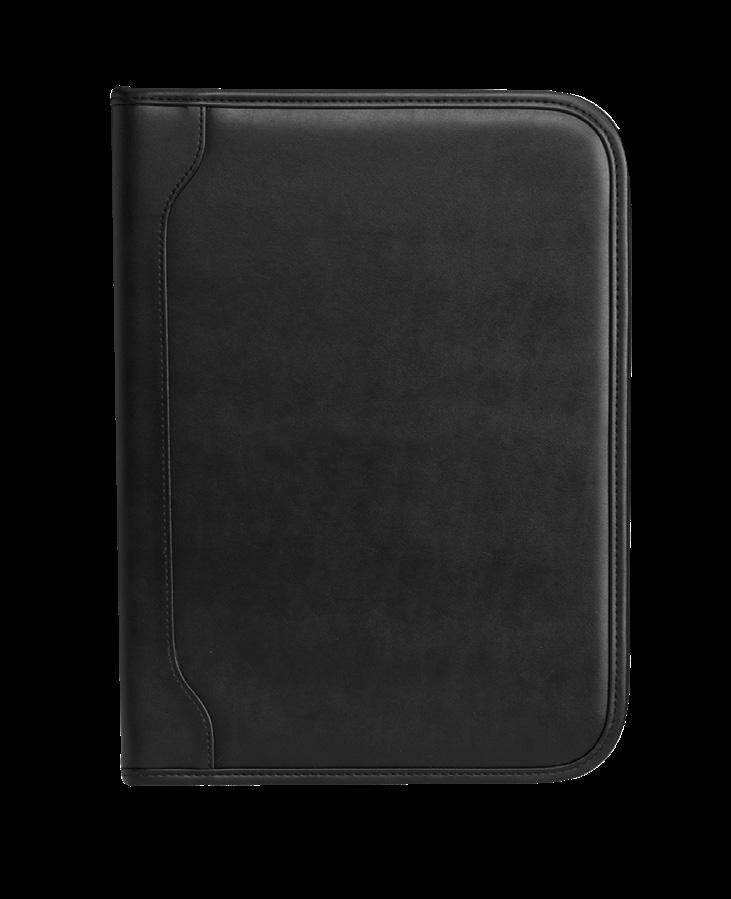 Neatly take your desk essentials on the go with this padfolio crafted with vegan leather and a zippered closure. It includes a letter-size paper pad, spaces for a pen, cards, USBs, a small tablet or e-reader, and even your phone.