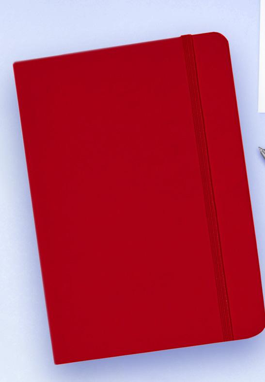 Jot down notes in this 5.5” x 8.25” soft-bound leatherette journal. It boasts 160 pages of white ruled paper, an accordion pocket, an elastic band closure and a ribbon bookmark.