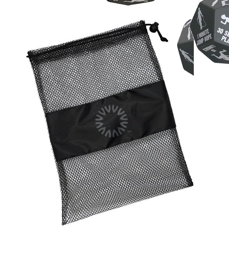 Grab a friend and gamify your workout routine with this set of two 12-sided workout dice—each side has a different exercise and repetition, Plus, the set includes a mesh bag for convenient storage.