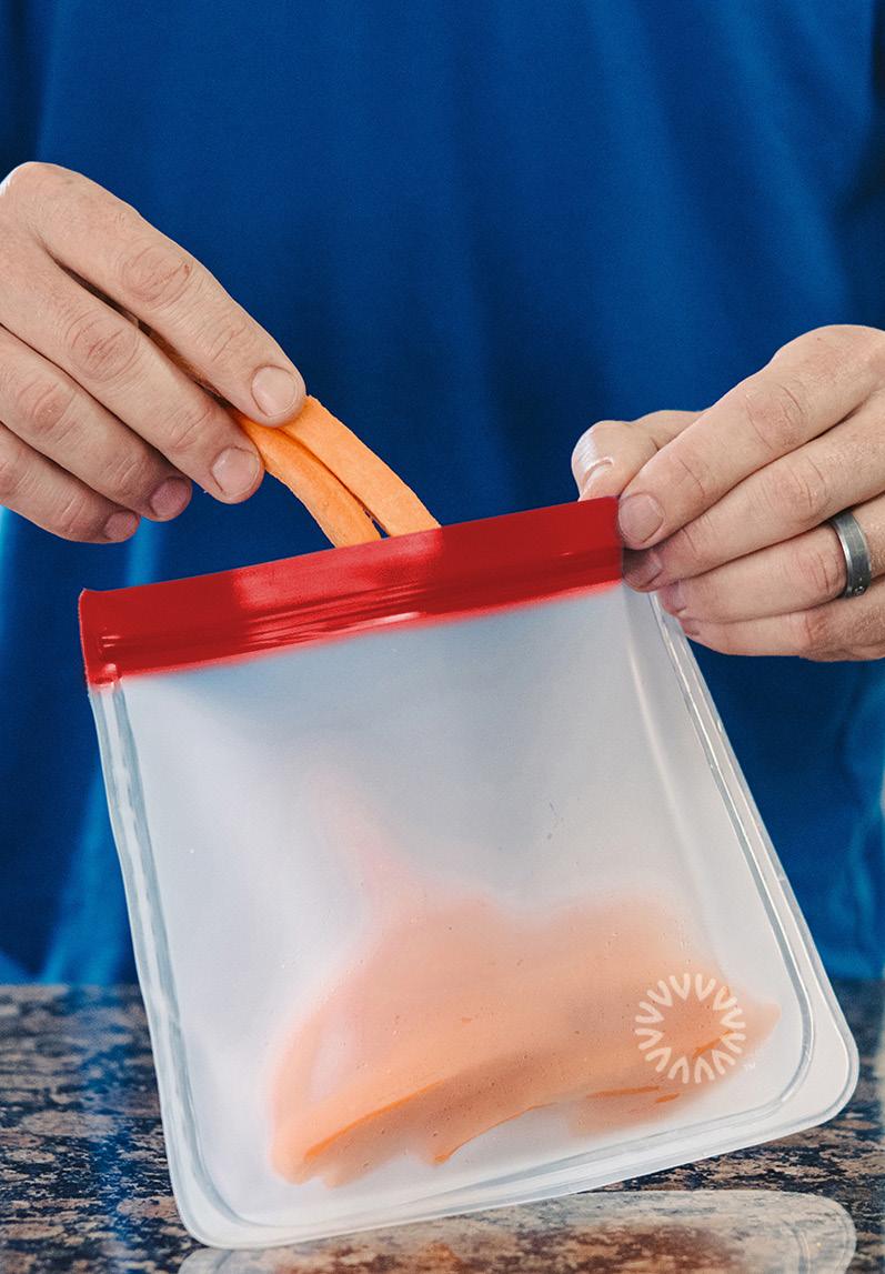 Go green and reduce waste with these reusable substitutes for disposable resealable zippered pouches, designed to store and keep your favorite snacks fresh.