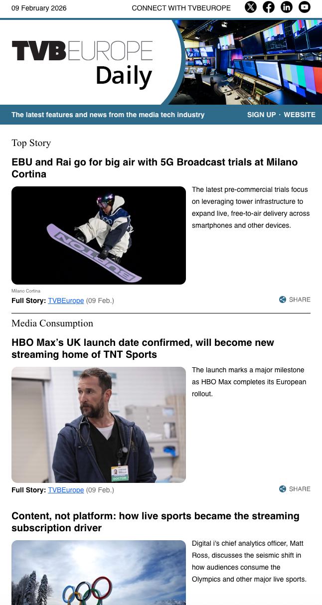 TVBEurope’s newsletter is your free resource for exclusive news, features and information about our industry. Here are some featured articles from the last few weeks…