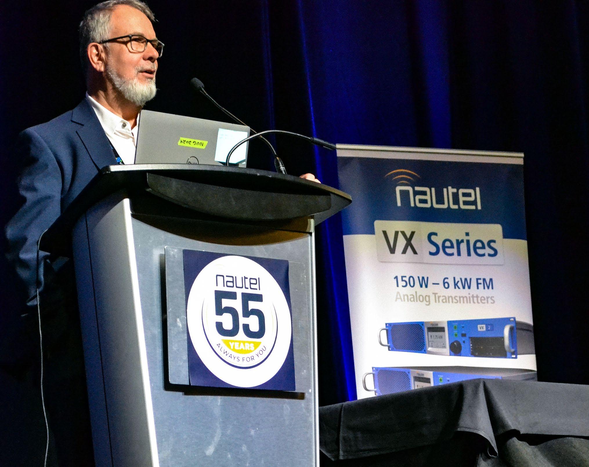 Above Kevin Rodgers speaks at a Nautel event during the NAB Show in 2024.