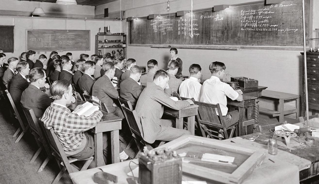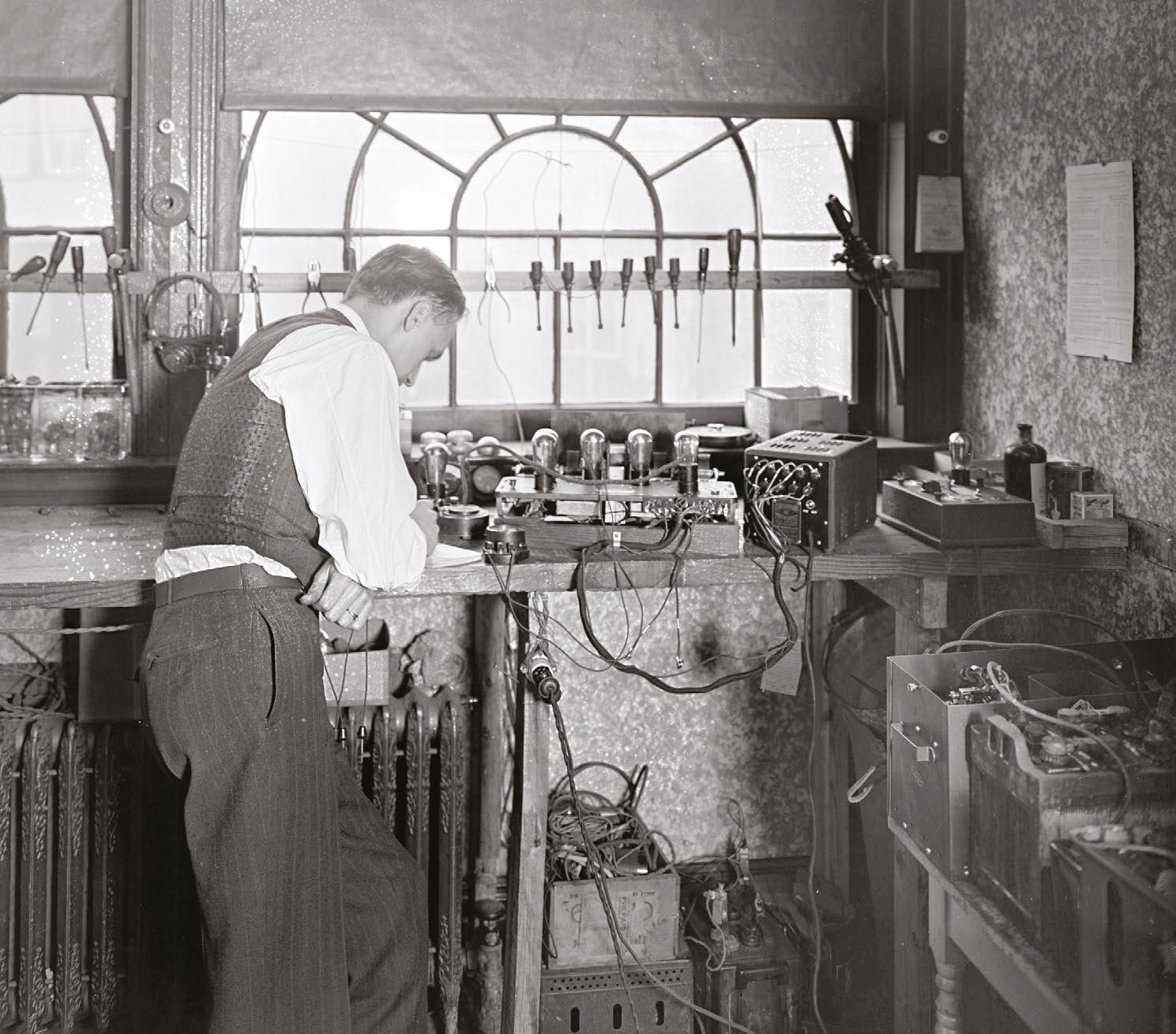 A student works on a radio project in the Loomis Radio School. Library of Congress
