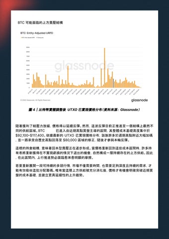 隨著獲利了結壓力放緩,價格得以延續反彈。然而,這波反彈目前正推進至一個結構上截然不 同的供給區域。BTC 已進入由近期高點買盤主導的區間,其整體成本基礎高度集中於 $92,100$117,400。依據最新的 UTXO 已實現價格分布,該族群多於週期高點附近大幅加碼 ,並一路承受自歷史高點回落至 $80,000 區域的修正,隨後才參與本輪反彈。 這樣的持倉結構,意味著回本型賣壓正在逐步形成。當價格重新回到這些成本區間時,許多持 有者將重新獲得在不實現虧損的情況下退出的機會,自然構成一層持續存在的上方供給。因此 ,在此區間內,上行推進勢必面臨愈來愈明顯的摩擦。 若要重新展開一段可持續的多頭行情,市場不僅需要時間,也需要足夠深度且持續的需求,才 能有效吸收這批分配籌碼。唯有當這層上方供給被充分消化後,價格才有機會明確突破近期買 盤的成本基礎,並建立更具延續性的上升趨勢。