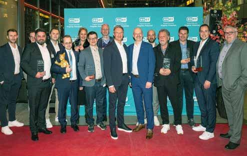 Gruppenfoto mit allen Award-Gewinnern: ESET-Deutschland-Chef Holger Suhl und Peter Neumeier (mittig) freuen sich mit ihren Partnern.