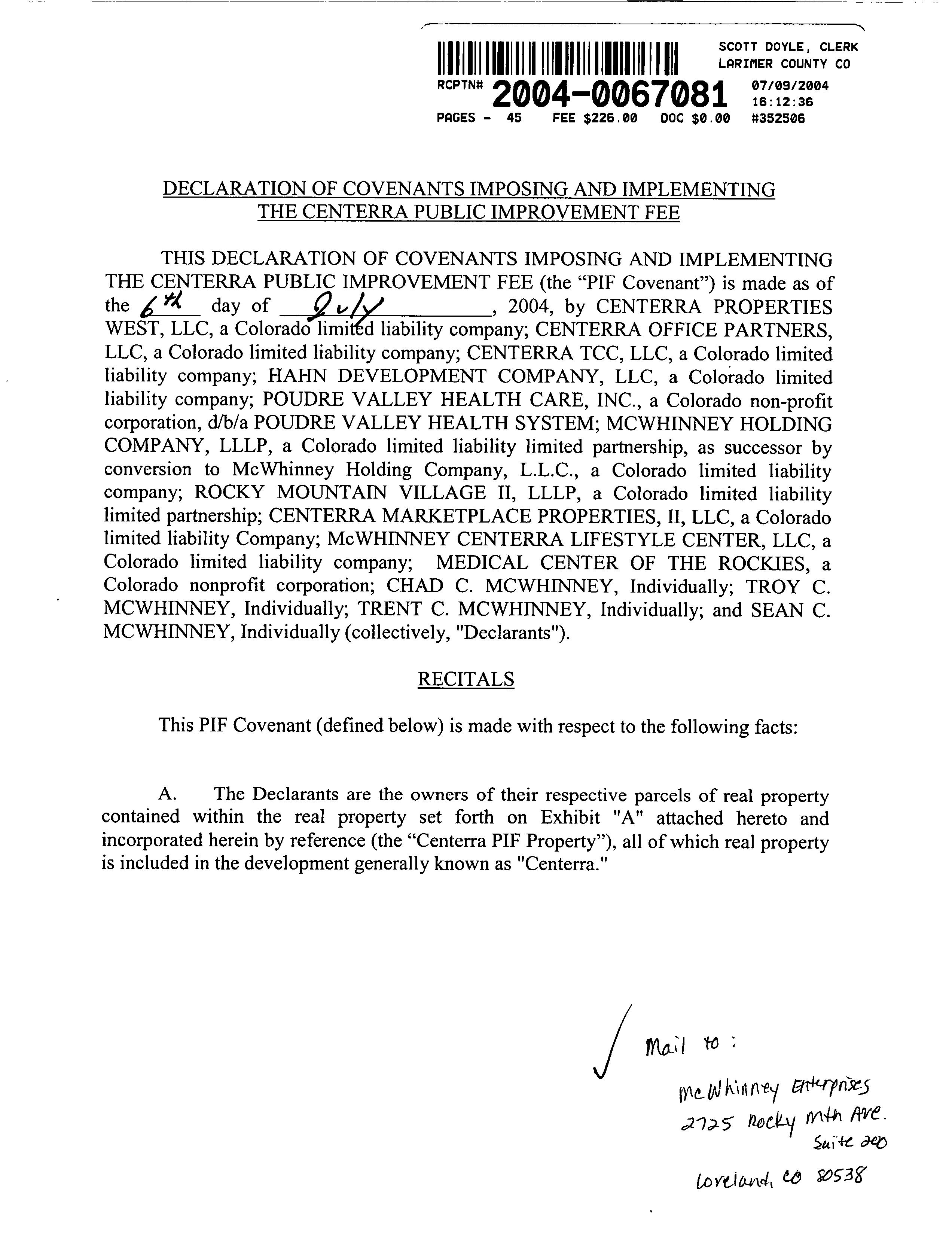 Mailing Address : 3183 Booth Falls Dr, Loveland CO 80538-7174 R019