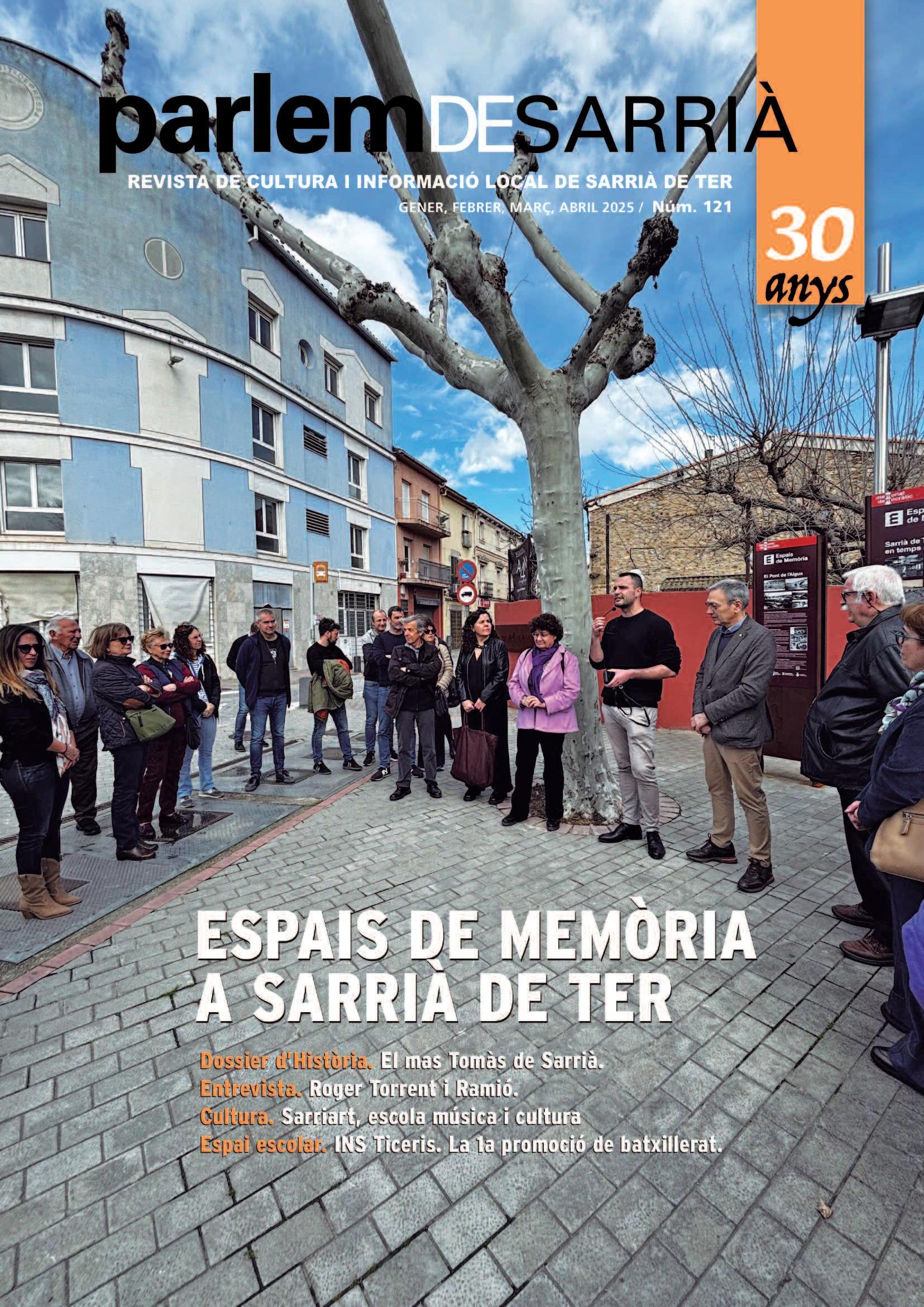 En aquest número, presentem un dossier dedicat a la nissaga dels Tomàs, una família que habitava el mas Tomàs i que, tal com s’ha pogut documentar, té els seus orígens a l’època medieval, al segle XIII A Sarrià de Ter ja no hi queda cap descendent directe dels Tomàs, però sí el casal actualment propietat de la família Vinyals i els corresponents panteons familiars situats al petit cementiri de la parròquia de Sant Pau a Sarrià de Dalt