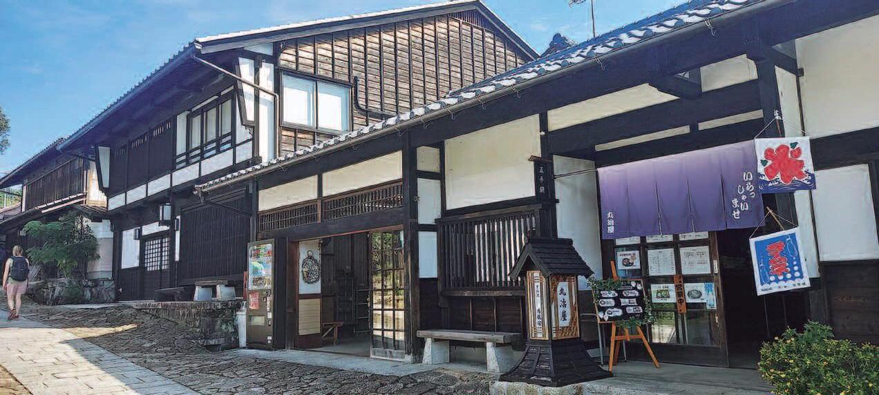 Als dos poblets que estan al cap del recorregut, a banda de restaurants o botigues d’artesans, també s’hi poden trobar sakeries de proximitat, cases on s’elabora el sake de manera artesana i que s’identifiquen amb una gran bola de fulles verdes de cedre sobre l’entrada Les antigues cases residencials es disposen al llarg dels carrers de llambordes, amb les seves finestres de gelosia de fusta per preservar la intimitat