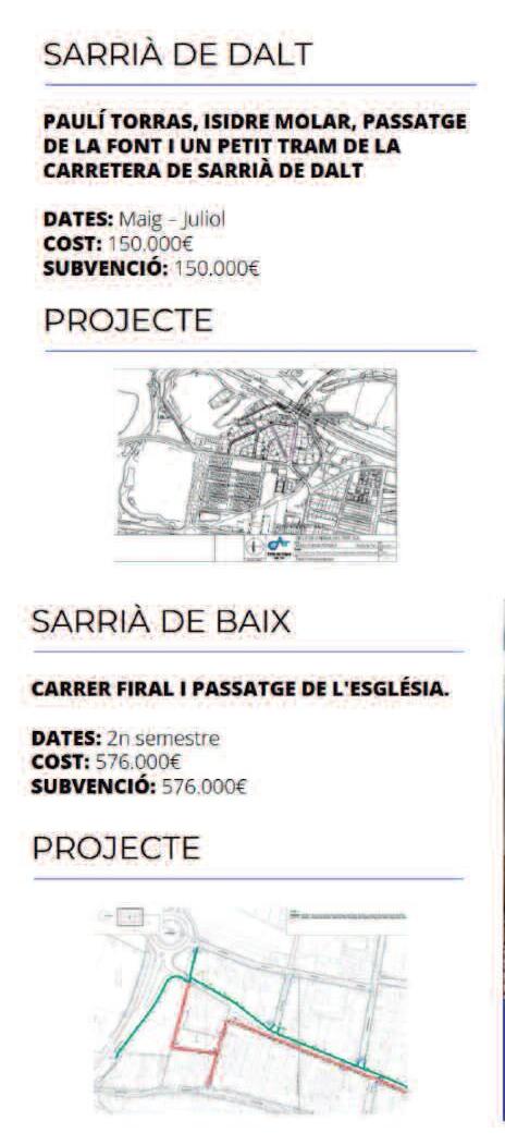Pel que fa a la renovació de canonades a Sarrià de Baix, aquest projecte té una major envergadura i es realitzarà durant el segon semestre de l'any. Enguany les actuacions se centraran en el carrer Firal i el Passatge de l'Església Està previst que en els anys 2026-27 es realitzi la renovació dels carrers adjacents al carrer Firal