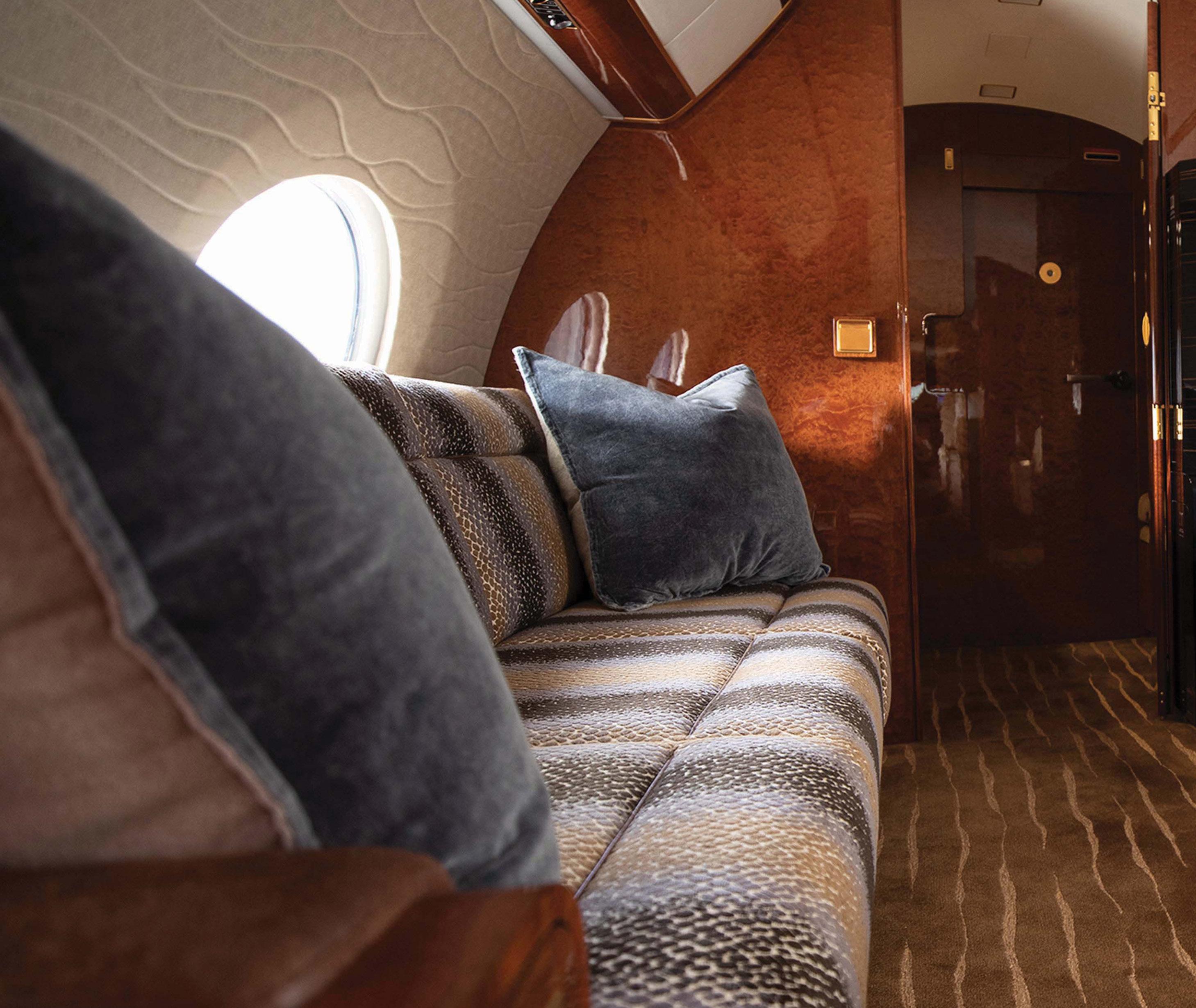 Whether your mission is from Teterboro to Washington, D.C., or São Paulo to Paris, no detail of service or comfort is wasted aboard our Gulfstream G650. Ergonomic seats with plush leather upholstery, custom inlaid wood interiors, fine textiles, crystal glassware and other elegant details are curated for those with particularly refined tastes.