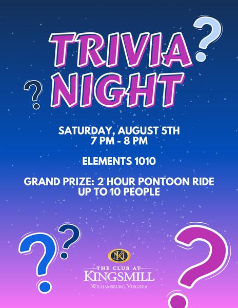 Join us for bar snacks, drinks, and test your trivia knowledge.