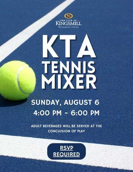 Please join KTA for a Tennis Mixer. Reservations Required.