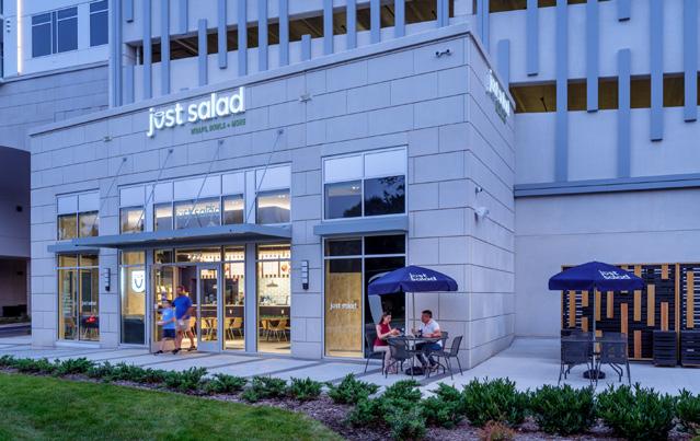 Located within a mixed-use development in the heart of the dynamic SouthPark shopping district, this Just Salad eatery maximizes space, street-level visibility and operations. With a portion of the space situated beneath a parking garage, designers used an abundance of glass at the street-side entrance, providing high visibility, and incorporated natural materials that reinforce the Just Fresh mission focused on health and sustainability. The space includes indoor and outdoor seating, helping to give this next generation development a new destination for healthy eating.