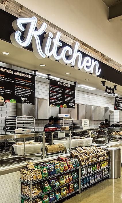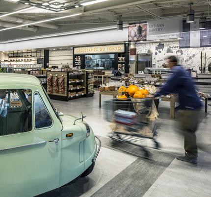 Lazy Acres understands the importance of being dedicated to its local communities. Offering wholesome, natural and organic foods, this supermarket features a working classroom where adults and kids can receive hands-on instruction to learn and taste as they cook. Also central to this design is a “Bee Department,” featuring a live observation Honeybee hive, that highlights these important insects and how they contribute to the food system.