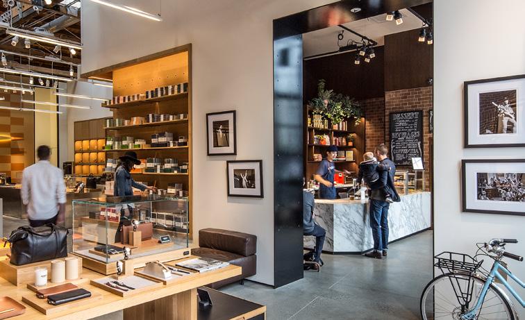 Shinola required site adaptions for localized design concepts across multiple locations. The design of this Los Angeles store involved transforming a 1915 warehouse into a cohesive retail space that houses three distinct uses - traditional retail, the di Alba Café and a “speakeasy” tattoo salon - while integrating the signature aesthetic elements of the building’s original character. The sleek design result celebrates American craftsmanship against an appropriately industrial back-drop.