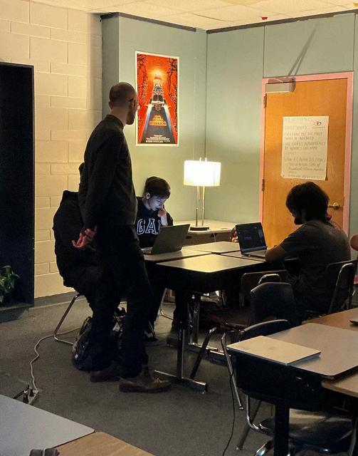 El Sr. Smeltzer, trabajando arduamente, impartía la clase de Preparación para la Universidad Foto de Cati Cruz