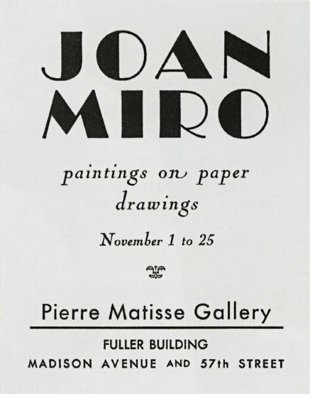 The Arts Club of Chicago, Joan Miró, March 1934.