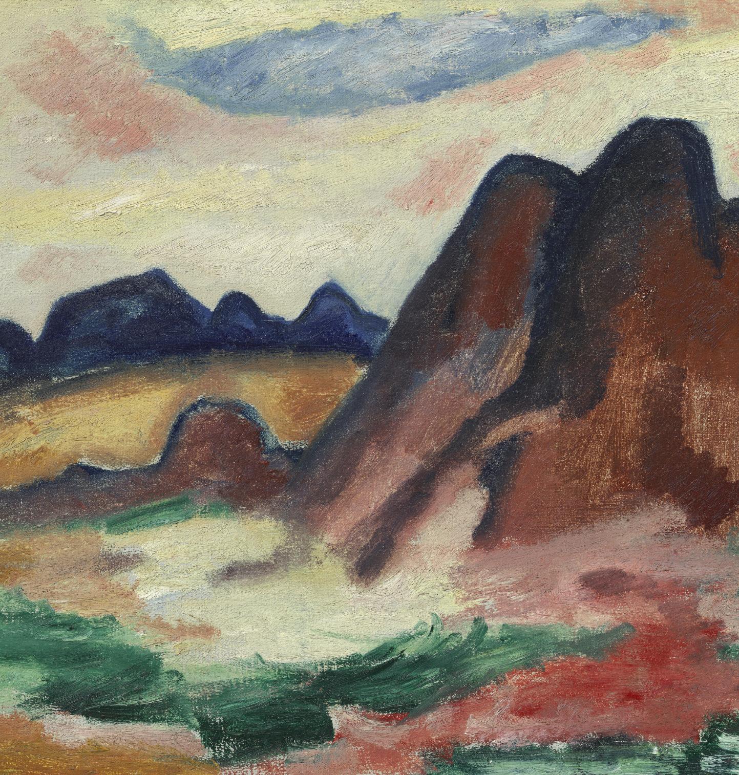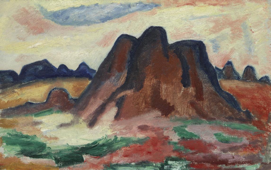 Europe and America are linked in many ways in the Weis collection. It seems that early on, before their most intensive years of collecting, the Weises took an interest in the paintings of Marsden Hartley. This American, who during his early years in Europe was deeply affected by the revolutions of Cubism and painted some abstractions unlike anything by anybody else, eventually focused on American people and places, not only New England but also the Southwest of the Weises’ New Mexico Landscape. There were times in the twentieth century when influences moved from America to Europe, a case in point being the Pierre Soulages in the Weis collection. It’s difficult to imagine that Soulages’ calligraphic attack on the canvas, his black strokes almost recklessly arranged, doesn’t reflect an appreciation for the work in black and white that Willem de Kooning and Kline had been doing in New York. It’s also worth remembering that Americans were interested in what some might regard as dissident or at least divergent strains in the new European art, including Morandi’s post-Cubist reengagement with representation. Morandi is represented in the Weis collection by a still life in which a few objects achieve an intimate monumentality. His still lifes and landscapes, featured in scattered exhibitions in New York in the postwar decades, left a number of American artists thunderstruck. For some he became an almost prophetic figure, revered, not unlike Mondrian, as a solitary adventurer undeterred by the pressures of fashion.
