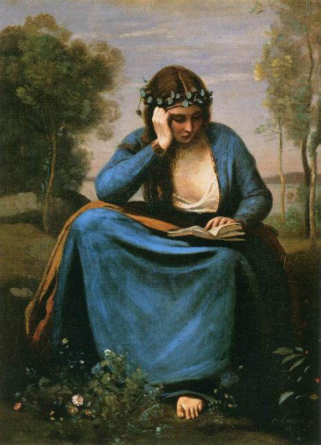 Jean-Baptiste-Camille Corot, The Reader Wreathed with Flowers (Virgil's Muse),1845. Musée du Louvre, Paris