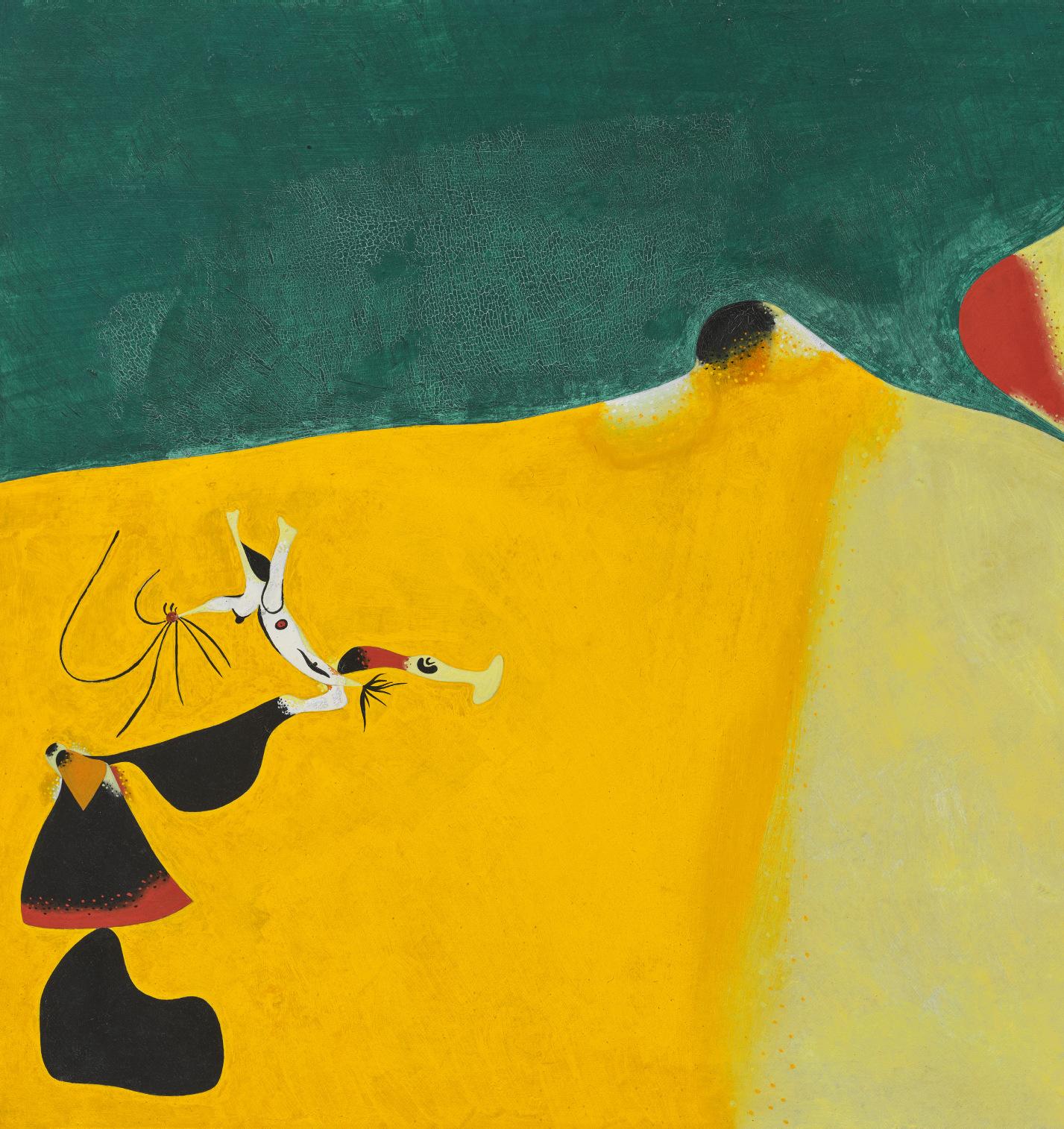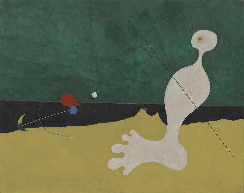 These explorations of sculpture and non-conventional media opened Miró’s eyes to different forms and a sense of space, allowing him to return to his easel with a renewed vigor and refreshed outlook. However, this burst of creativity also coincided with a period of financial difficulty for the artist— forced to abandon his apartment in Rue François-Mouthon in Paris, Miró returned to Barcelona, settling with his wife and young daughter at number 4, Passtage del Crèdit, his childhood home where his mother still lived. In his letter to Zervos, Miró described his new studio and the oddness he felt upon his return: “I just have to tell you that the room which will from now on be my studio is the room where I was born. This, after an eventful life and the experience of a reasonable success, feels very strange…” (quoted in A. de la Beaumelle, exh. cat., op. cit., 2004, p. 357). It was here that the first ideas for these new paintings took root. Miró then devoted the summer months to painting, producing this focused series of brightly-hued, jewel-like compositions, which take as their subject the distorted bodies of a collection of mysterious, biomorphic figures.