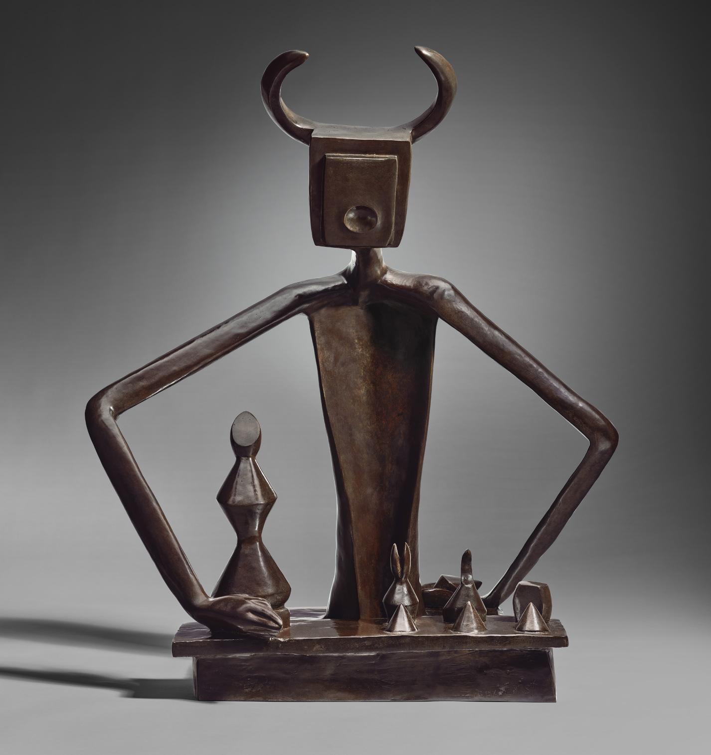 play was the key to civilized existence. Even the most intractable conflict could be resolved if only there were rules, precisely the kind of rules the Fascists refused to play by. Ernst’s sculpture is about rules and broken rules, an allegory of instability.
