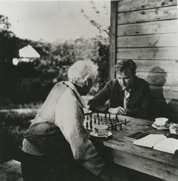 The original plaster of Max Ernst’s Le roi jouant avec la reine was created in New York during the war, as a contribution to an exhibition, The Imagery of Chess, mounted at the Julien Levy Gallery. Levy, in business since the 1930s, was an early and tireless advocate for Surrealism in New York, produced an important book on the subject, and was a staunch supporter of a couple of artists in the Weis collection, not only Gorky but also Joseph Cornell. Chess has a privileged place in the modern imagination, a fascination of creative spirits from Lewis Carroll to Duchamp and Nabokov. It’s an ancient game, the royal imagery a survival of the Middle Ages or earlier, a ritualized reimagining of geopolitical conflict that, for artists and writers confronting the horrors of World War II, offered some solace, the intricate rules a temporary escape from the daily headlines. In Ernst’s strange imagining, the King, a figure whose role in chess is far less dynamic than the Queen’s, has sprung from the board and grown much larger than the Queen. He lords over the game, the Queen now his pawn. Is this King, with horns that to some have suggested the Minotaur of Greek myth, a stand-in for the artist himself? The chess player, moving the pieces around the board, is not unlike the modern artist working paint across canvas; both the chess board and the painter’s rectangle are realms that can only be conquered with some combination of discipline and imagination. The better you know the rules the better off you’ll be when it comes to breaking or at least rethinking them—that’s what one hopes. Shortly before the beginning of World War II, the Dutch historian Johan Huizinga published a book, Homo Ludens, in which he argued that disciplined