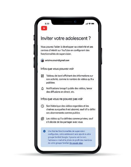 Pour un contrôle parental plus poussé, les Expériences Supervisées permettent de personnaliser l’accès au contenu en sélectionnant le niveau adapté à l’âge de l’enfant. Vous pouvez également limiter le temps passé sur Shorts et désactiver la lecture automatique ainsi que définir l’autorisation de commenter ou de publier.