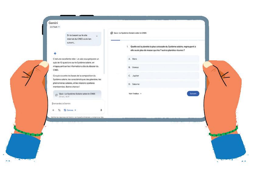 Dans cette optique, il est important de les utiliser comme un outil et non pas comme une source de vérité absolue. Avec Gemini par exemple, l’assistant IA de Google, la fonctionnalité apprentissage guidé permet de suivre les étapes du raisonnement pour comprendre le « comment » et le « pourquoi » des concepts mais aussi de créer des quiz interactifs à choix multiples, avec la possibilité d’ajuster le nombre de questions, les types de questions et le niveau de difficulté.