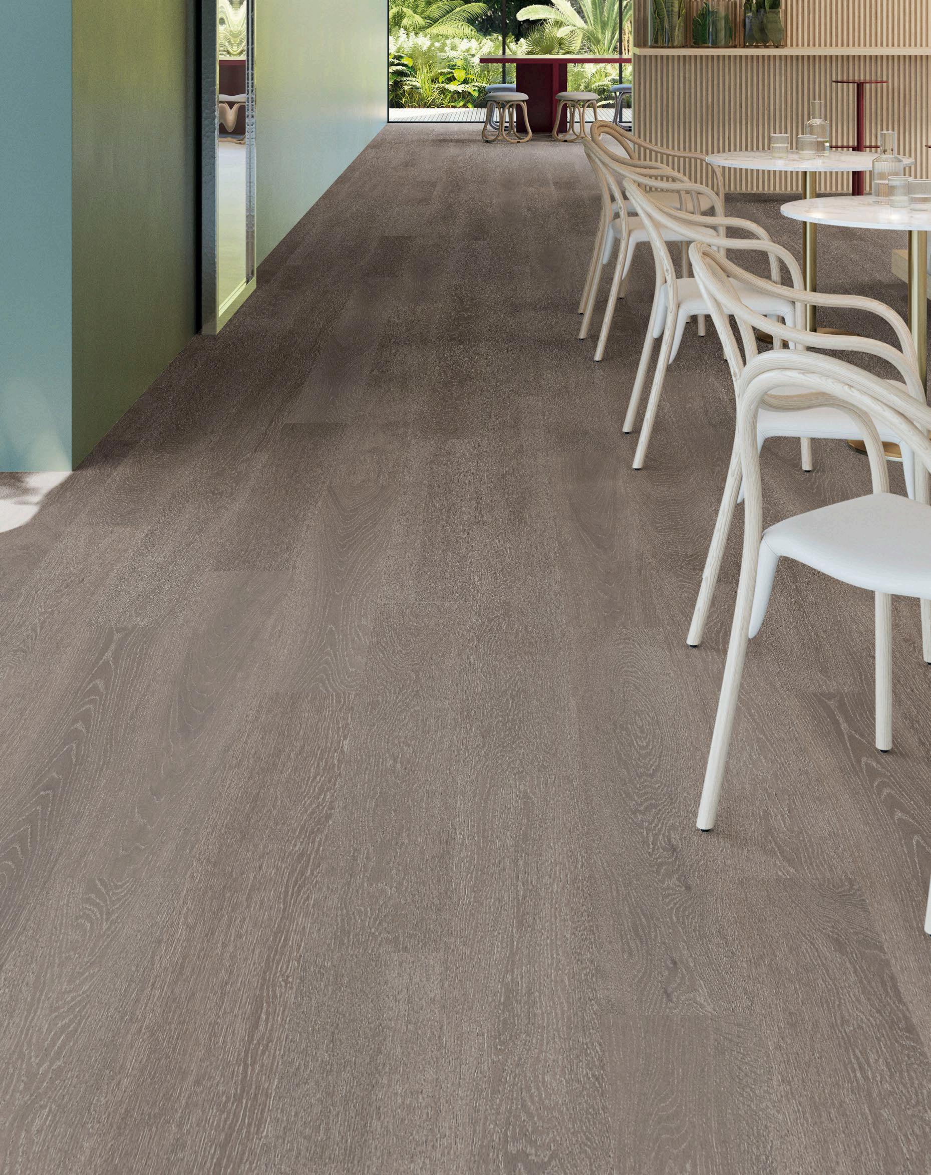 PVC-free EcoWorx™ Resilient in 2.5 mm thickness format. Available as a 21 cm x 129 cm plank, in a range of timeless wood visuals. Selection of 15 defined tones.