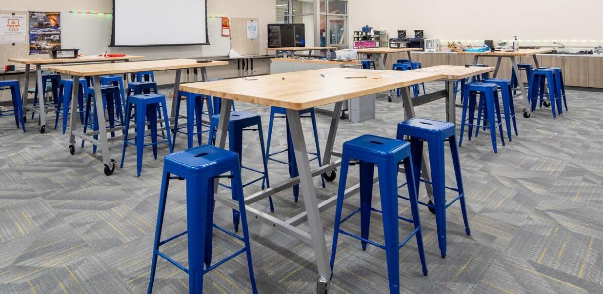 TransFORM Studio designer, Katie Myers Wender, collaborated with the Career Tech team on materials selection, branding, wayfinding and the flooring layout, providing 2D and 3D visualization to help with the design process.
