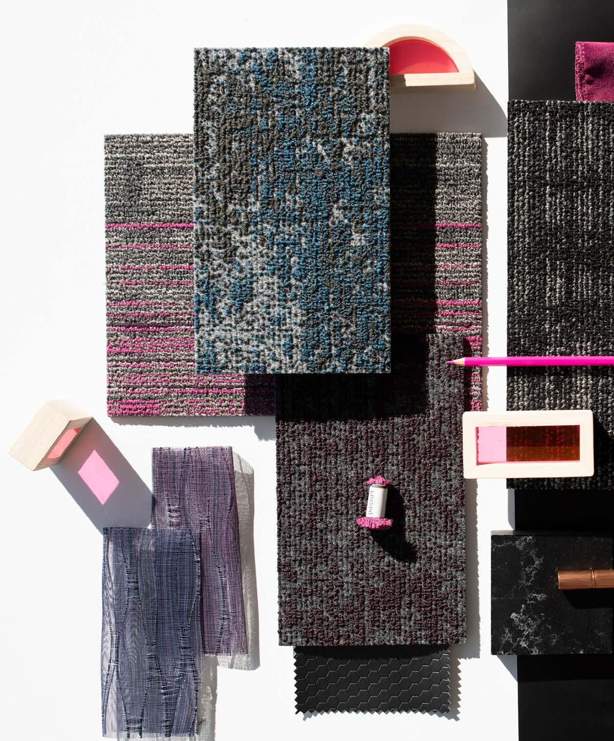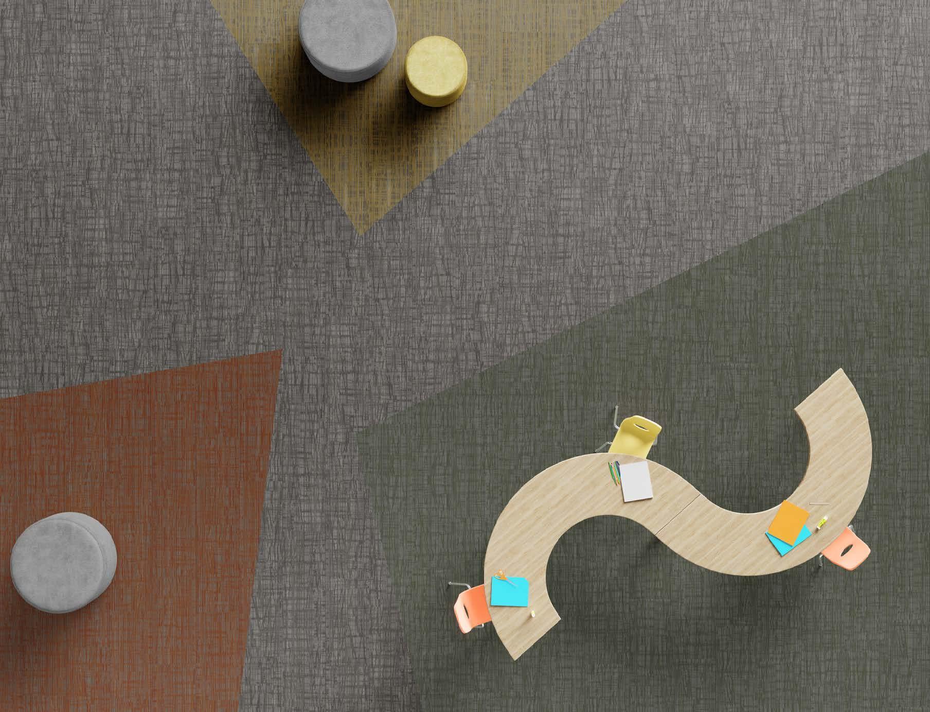 Color intensity. Collides and connects. A durable, high-performing carpet tile collection designed for collaborative environments. Graphic textures. Infused with color. Creating spaces to come together and learn.