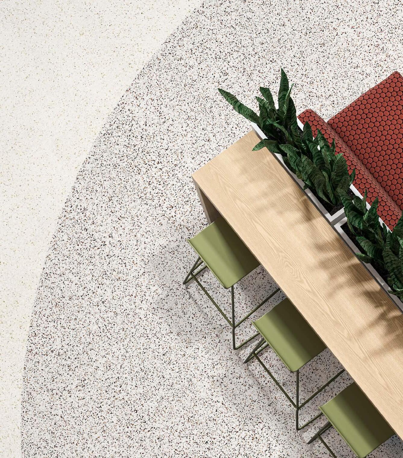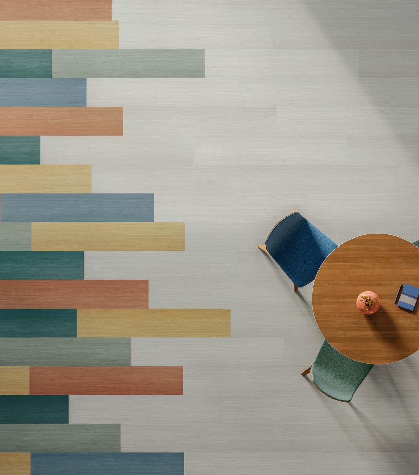 Shape Study is a hard surface collection available in 24” x 24” tiles and two visuals—a textured near solid and a large scale abstract pattern. Offered in a range of vibrant colors that seamlessly coordinate with versatile neutral tones, the collection is designed to support branding, wayfinding and definition of space within education and healthcare environments. The abstract patterns provide opportunities for creative installations and customized design, promoting design flexibility with a self-patterning visual.
