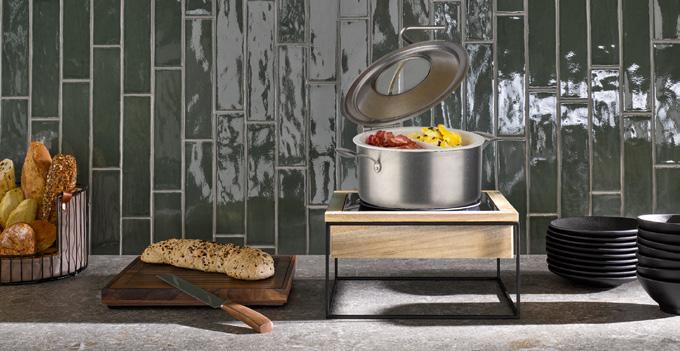 multifunktionaler, stapelbarer Buffetständer aus pulverbeschichtetem Metall multifunctional, stackable buffet stand made of powder-coated metal soporte multifuncional apilable para buffet fabricado en metal con recubrimiento en polvo support de buffet multifonctionnel empilable en métal revêtu par poudre