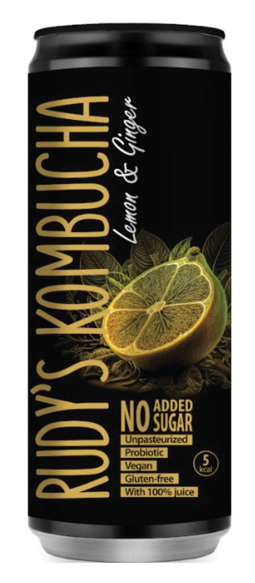 Tējas dzēriens RUDY'S Kombucha, Citrons&Ingvers, bundžā, 0.33l (DEP)