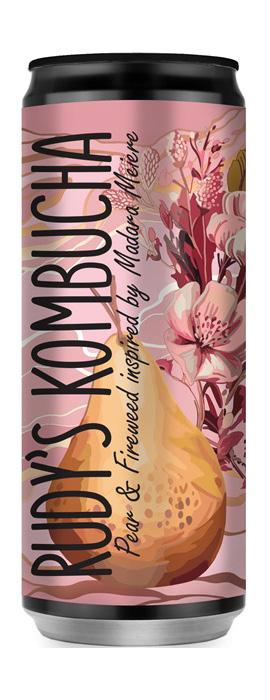 Tējas dzēriens RUDY'S Kombucha, Bumbieris&Ugunspuķe, bundžā, 0.33l (DEP) X425192