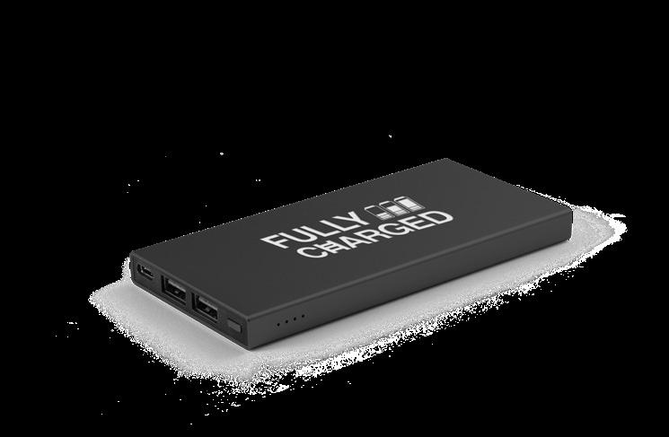 Power bank made from recycled ABS (100% rABS).
