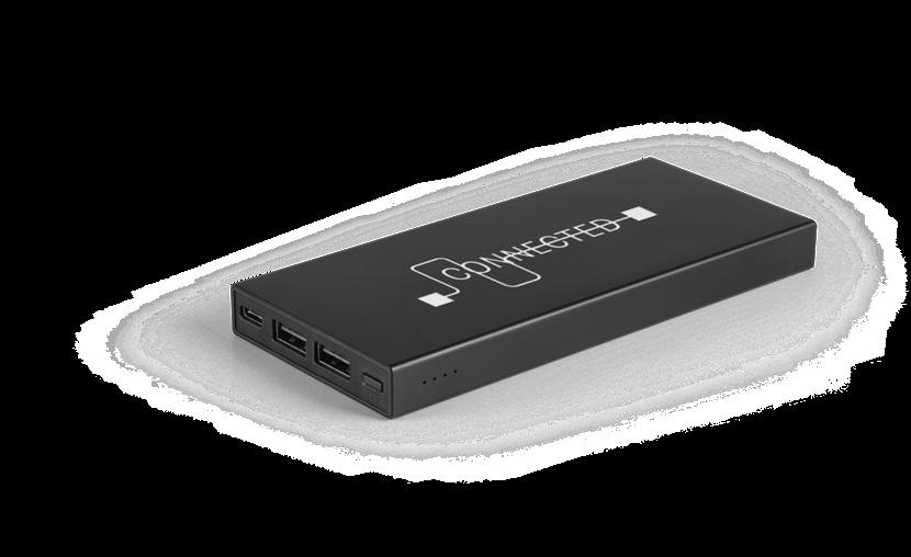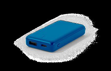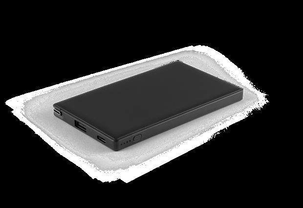 Power bank made from recycled ABS (100% rABS). Super light and extremely small, it’s the ideal solution to carry with you at all times and guarantee the necessary charge in emergency situations. Portable battery with 4,000 mAh capacity, charge level indicator, one USB-C input port and one USB-A output port. Includes a USB-C charging cable. Supplied in a recycled kraft paper gift box.