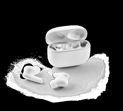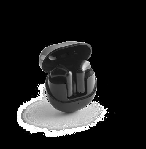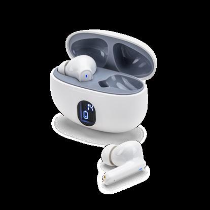 Wireless earphones made from recycled ABS (100% rABS), with BT v5.4 transmission. The charging case has a digital display that shows the charge level and has a capacity of 200 mAh, offering an autonomy of approximately 4 hours. The earphones allow you to answer calls, control the volume and playlist on your mobile device. Includes a USB-C charging cable. Supplied in a kraft paper gift box.