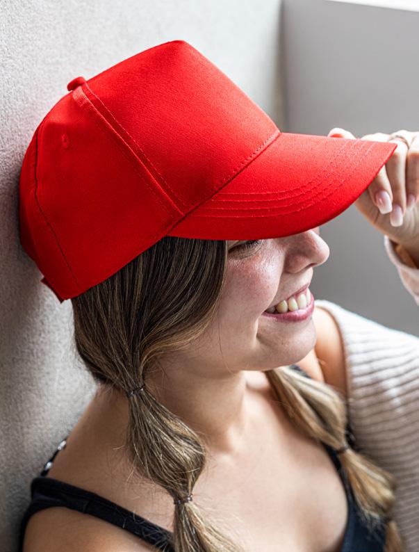Recycled polyester cap (100% rPET) with 5 panels and eyelets for ventilation (210 g/m²). Adjustable with adhesive zip.