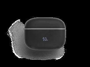 Wireless earphones made from recycled ABS (100% rABS), with BT v5.4 transmission and active noise cancellation (ANC), so you can concentrate on the main tasks of your day or relax listening to your favourite music without external noise. The charging case has a digital display that shows the charge level and has a capacity of 500 mAh, offering an autonomy of approximately 7 hours. The earphones allow you to answer calls, control the volume and playlist on your mobile device. Includes a USB-C charging cable. Supplied in a kraft paper gift box.