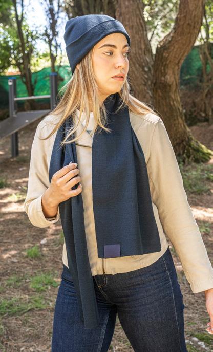 Scarf in recycled polyester (100% rPET) with a stitched detail for personalisation. It has a soft touch that guarantees your comfort on any occasion.