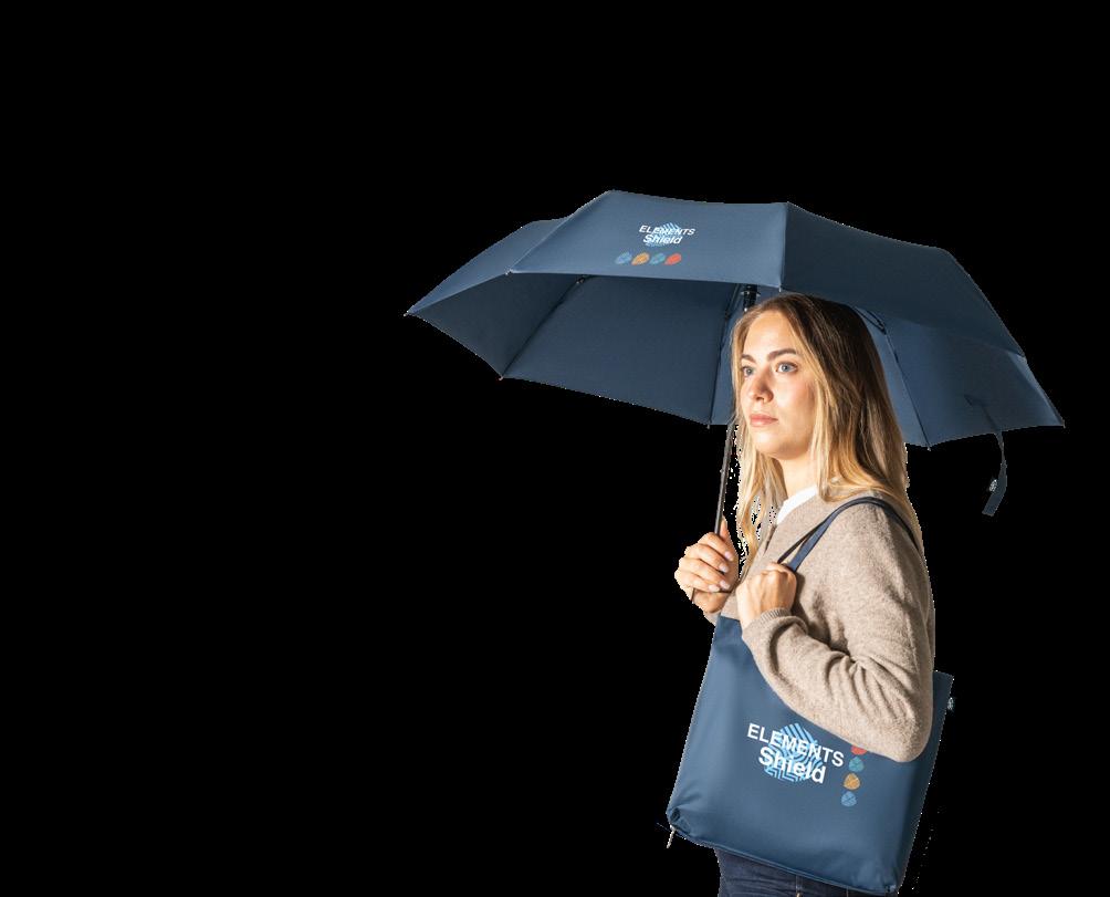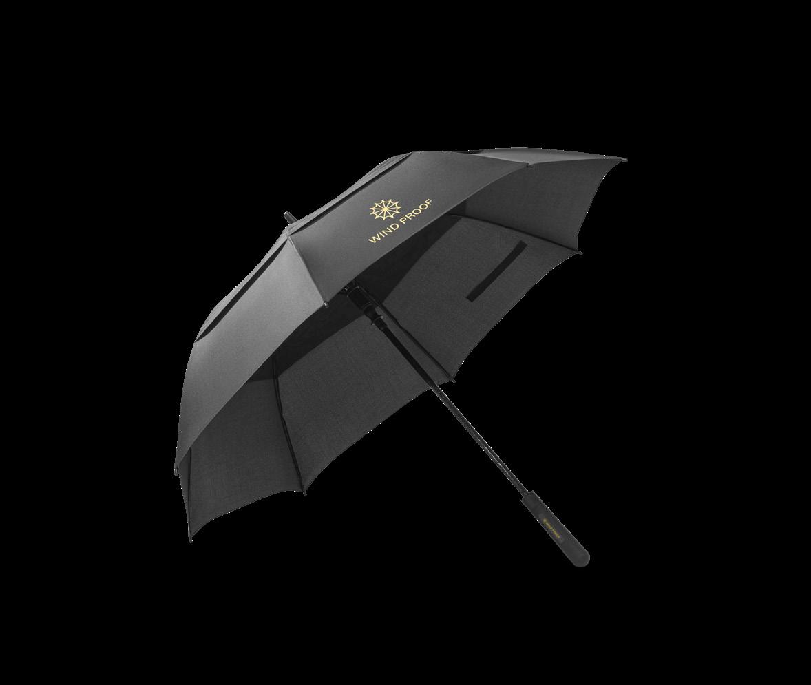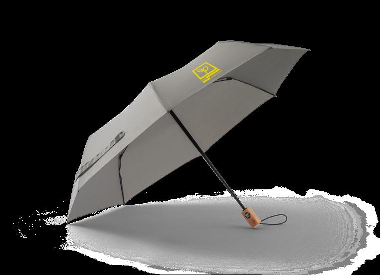 23’’ foldable umbrella in recycled polyester (100% rPET) 190T pongee. Fibreglass ribs, metal shaft and handle in recycled ABS (35% recycled). The automatic opening and closing umbrella is also windproof, and is foldable in 3 sections. Supplied in bag.