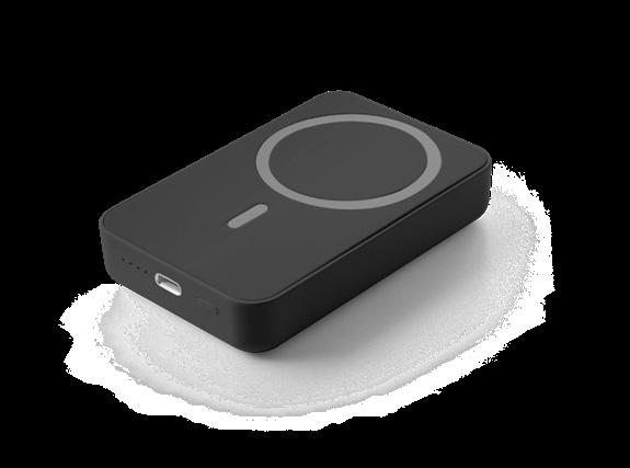 Magnetic power bank in recycled ABS (100% rABS) with super-fast wireless charger. This portable battery, with its modern design, is practical and very easy to use on a daily basis. Thanks to its magnetic capacity and wireless charging, it’s easy to attach to your mobile device. It includes an extra magnetic ring for smartphones that don’t have the magnetic function. It has a capacity of 5,000 mAh, a USB-C input/output port with PD 20W fast charging and a maximum power of 15W for super-fast wireless charging. Compatible with mobile devices with wireless charging technology. Includes a USB-C fast charging cable. Supplied in a recycled kraft paper gift box.