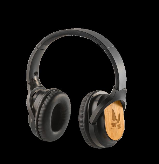 Foldable wireless headphones in bamboo and ABS. They work with BT v5.0 transmission, have a micro SD card reader and a 3.5mm AUX jack, which allows the headphones to be used via audio cable, even when the battery is flat. The battery has a capacity of 400 mAh and can last for approximately 5 hours. The built-in microphone and buttons on the headphones allow you to answer calls, control the volume and playlist on your mobile device. Includes a USB-C charging cable and a 3.5mm audio cable. Supplied in a kraft paper gift box.