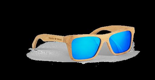 Bamboo sunglasses with mirrored lenses and UV400 protection. Supplied in a kraft paper pouch.
